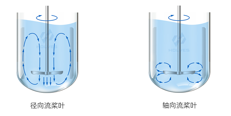 當液流從攪拌槳軸推向罐體內(nèi)壁便形成徑向流,當液流沿攪拌槳軸上下推動便形成軸向流,同理當攪拌槳帶動液體既有徑向流動又有軸向流動時便為混合流。