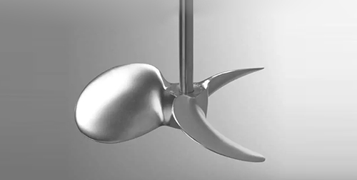 也被稱為推進式攪拌槳,如圖所示。槳葉前面可為平面或凹面,但背面都是凹面。在旋轉(zhuǎn)時使液體向前方呈軸向流排出,使之在罐內(nèi)形成循環(huán),用于產(chǎn)生軸向流。這種槳葉循環(huán)速度較高,但是循環(huán)量較大,攪拌時產(chǎn)生的剪切力較小,但其和徑向流槳葉一樣,均是產(chǎn)生的單向流,因此混合效果較差,常用于低粘度流體,常用轉(zhuǎn)速范圍為100~500rpm。此類槳式及推進式槳葉對氣體吸收過程基本上不適用,只有在少量易吸收的氣體或要求分散度不高時才能應用。它主要用于液-液體系的混合、使溫度均一化、在低濃度固-液體系中防止淤漿沉降等或者某些特定的厭氧培養(yǎng)。 |